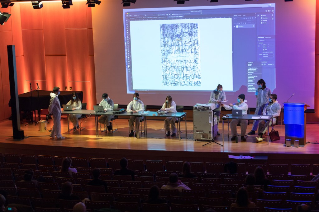 ↳ „re.21.lettres.a.la.photographie@gmx.de“ mit Master-Studierenden der Folkwang Universität der Künste, multimediale Performance im Rahmen der Phototriennale Hamburg, Hamburg, 3.6.2022.