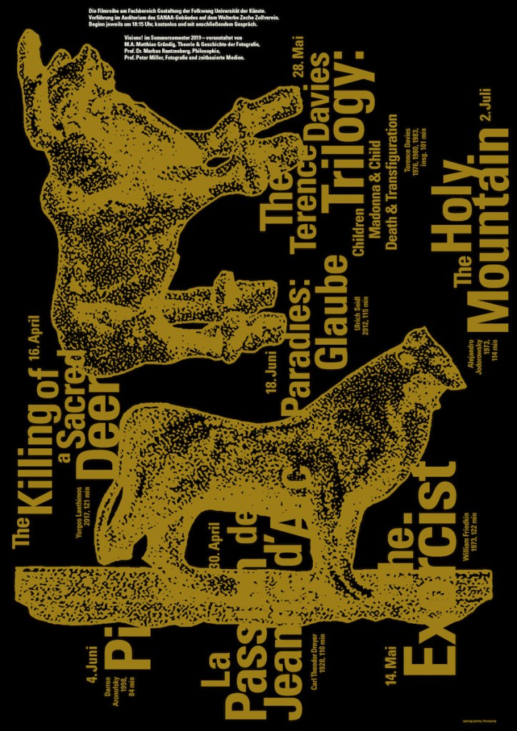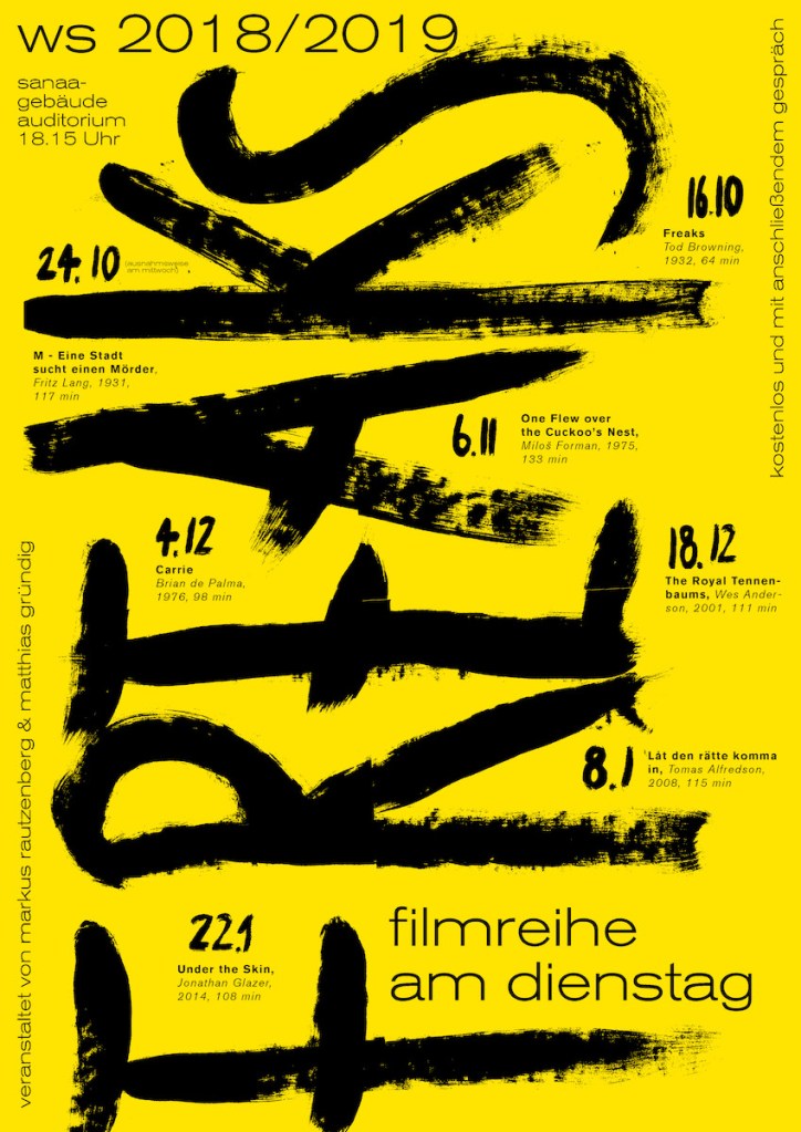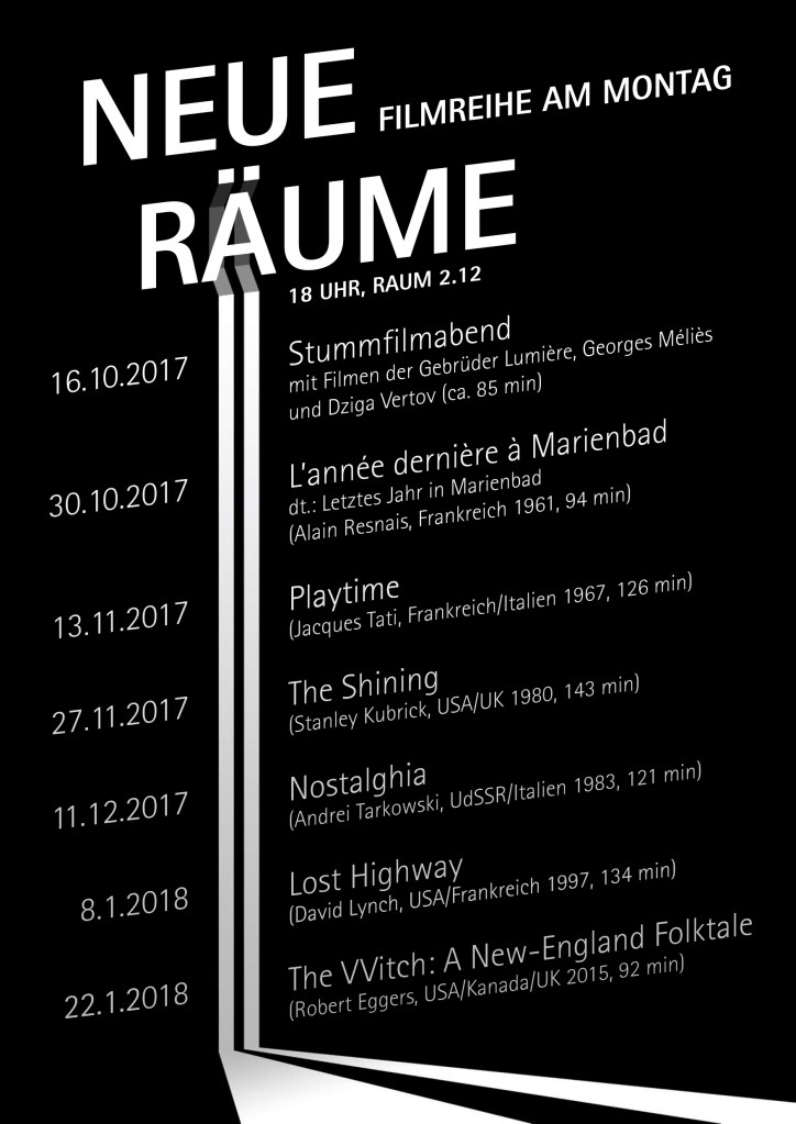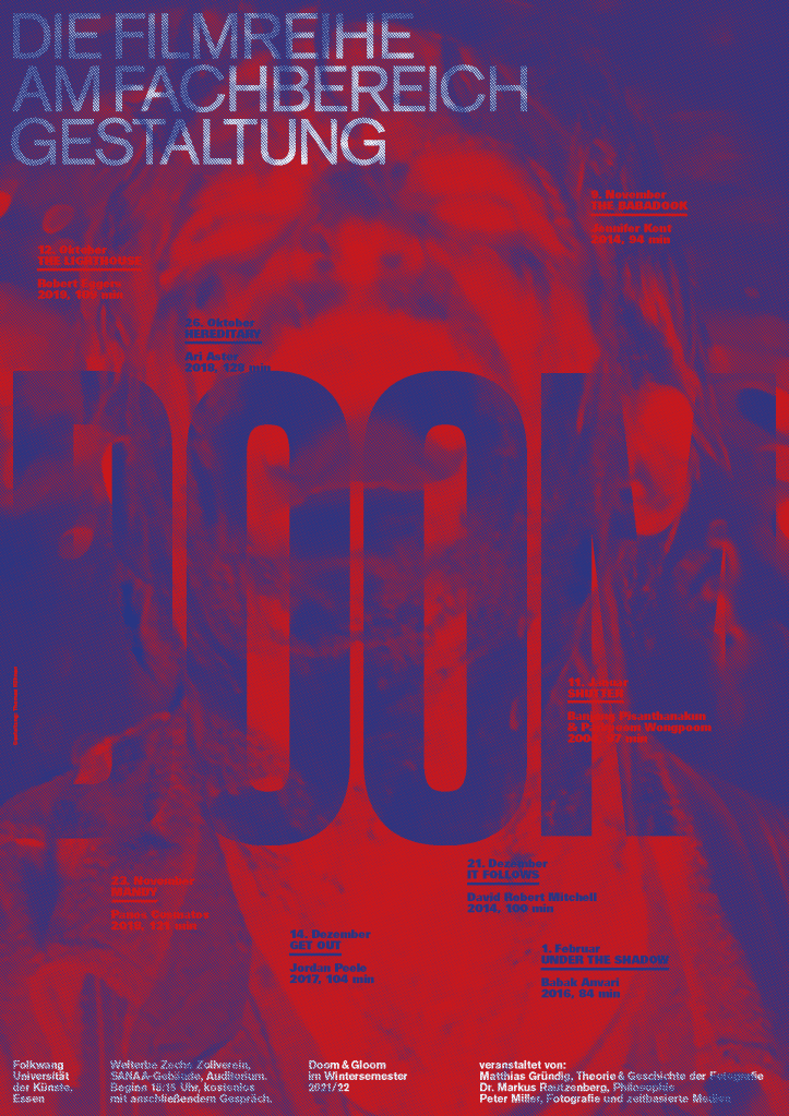 Außercurriculare Filmreihen an der Folkwang Universität der Künste zu wechselnden Themen mit anschließender Diskussion. Mit Plakaten von Thomas Kühnen* und Mona Leinung°.
