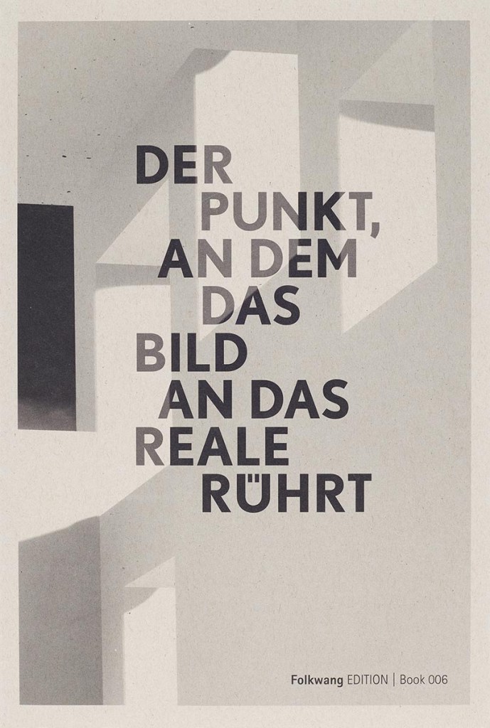 ↳Folkwang Universität der Künste (Hg.): Der Punkt, an dem das Bild an das Reale rührt (Katalog zur gleichnamigen Ausstellung im SANAA-Gebäude am Campus Welterbe Zollverein der Folkwang Universität der Künste, 24.6.–1.7.2018, mit Einleger zur Ausstellung „Das staunende Auge“ im Rundeindicker I im Portal der Industriekultur, UNESCO-Welterbe Zollverein, 18.1.–10.2.2019), Folkwang Edition Book | 006, Essen 2019. (Koredaktion mit Elke Seeger und Folkwang Universität der Künste)